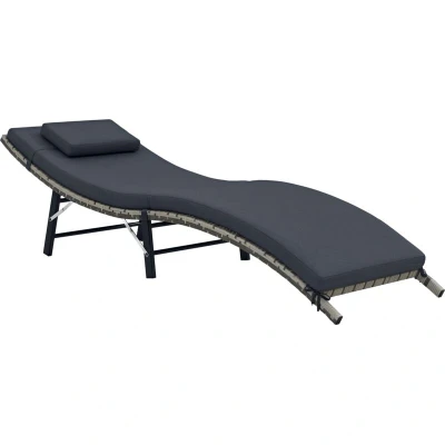 Outsunny Rattan Sun Lounger Garden Furniture Folding Outdoor Chair Wicker Weave Bed with Cushion and Pillow Grey