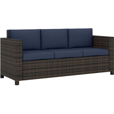 Outsunny Rattan Wicker 3 seater Sofa Chair Patio Furniture, Dark Blue