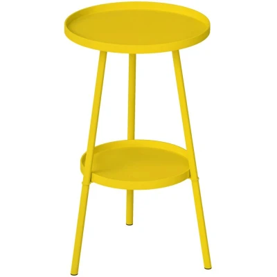 Keeps double the essentials at reach with this Outsunny round garden table. The two-tier design offers plenty of room for plants, accessories and more. Made from tough metal, this is a weather-resistant bistro table - suitable for indoor and outdoor use. Specifications: ● Colour: Yellow ● Material: Metal ● Overall Dimensions: Ф32 x 51H cm ● Bottom Tray Size: Φ25 cm ● Floor to Bottom Height: 21 cm ● Weight Capacity: top 30 kg, bottom 10 kg ● Item Label: 84G-573V00YL Features: ● Two-tier design provides lots of space for storage and display ● Tray like tops have raised edges for safety ● Metal structure is strong and suitable for outdoor use ● Small garden table suitable for compact areas ● Lightweight side table easily moves for various needs ● Easy-to-clean surface enhances both style and practicality ● Easy to assemble