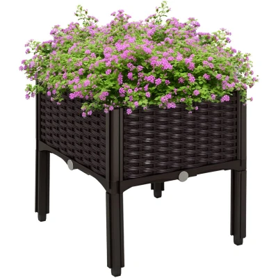 Outsunny Set of 1 26L Garden Raised Bed Elevated Patio Flower Plant Planter Box PP Vegetables Planting Container, Brown