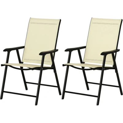 Outsunny Set of 2 Foldable Metal Garden Chairs Outdoor Patio Park Dining Seat Yard Furniture Beige