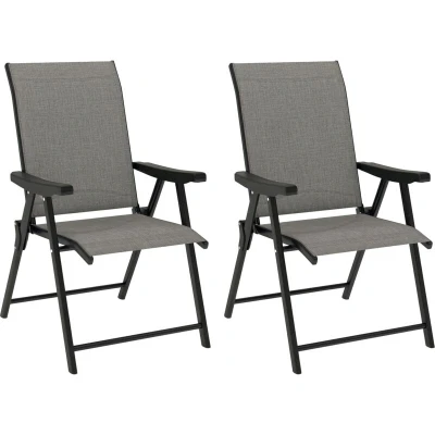 Outsunny Set of 2 Folding Chair, Garden Chair with Breathable Mesh Back and Seat, Outdoor Camping Chairs Armrests, Steel Frame for Deck Balcony, Black Grey
