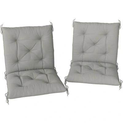 Refresh your single-seat chairs with these two replacement cushions from Outsunny. Each have a polyester fabric cover: smooth on the skin, durable and stain resistant - they're easy to care for. Plush cotton filling for comfort. The seat and back combined design keeps your upper and lower body comfortable. Completed with tie fastenings to hold into place. Specifications: ● Colour: Light Grey ● Material: Polyester, Cotton ● Overall Dimension: 50W x 98L x 8D cm(each) ● Seat: 49D cm ● Back: 49H cm ● Item Label: 84B-138V71LG ● Note: Please measure your chair size carefully before buying to make sure our cushion set fits well. Please note the chair is not included Features: ● Two seat-and-back cushions per set ● Ideal for indoor and outdoor single chairs ● Polyester fabric covers are soft, durable and resistant to light water and stain marks ● Thick cotton filling for comfort ● Tie fastenings to secure the chair in place ● Easy to clean