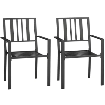 Outsunny Set of 2 Garden Chairs, Stackable Outdoor Chairs with Metal Slatted Seat & Backrest, for Yard, Garden, Black