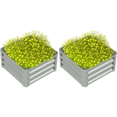 Outsunny Set of 2 Raised Garden Bed, Outdoor Planter Box with Galvanised Steel Frame for Growing Vegetables, Flowers and Herbs, 60 x 30.5 cm, Light Grey