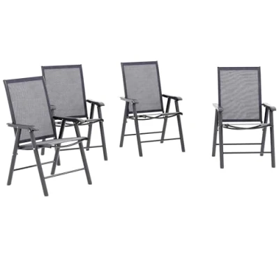 Outsunny Set of 4 Folding Garden Chairs, Metal Frame Chairs Outdoor Patio Park Dining Seat with Breathable Mesh Seat, Charcoal Grey