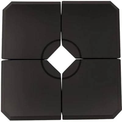General description Now you've got your new parasol ready for the Summer and beyond, you need to ensure you've got a base to go with it. From Outsunny, this four-part piece is ideal for keeping your parasol weighted and in place all day long. Using thick and rigid plastic, the shell is weather-resistant for long-term use, with filling caps located on the side of each piece to fill with water or sand – meaning you can fill them up when and where needed. Please note, cross base is NOT included. Technical specifications Item Name: umbrella base Brand Name: Outsunny Color: Black Material: HDPE Net Weight: 10.2 kg Overall Dimension: 100L x 100W x 9.5H cm Capacity: 20 kg water or 30 kg sand (per piece) Opening for water or sand: Φ5.5 cm Suitable Cross Bar Base Size: 100L x 100W cm Flat Pack: Yes Compatibility and accessories Suitable for Cantilever and Roma parasols Compatible with banana umbrellas and Roman umbrellas Usage Four-piece set, with all pieces slotting together on a cross base
