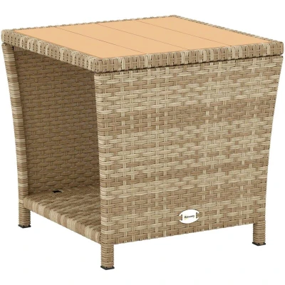 ManoManoYour serene outdoor moment deserves more than a cluttered floor for your essentials. That constant reaching and worrying about spills can spoil the tranquility of your patio or balcony. The Outsunny outdoor coffee table elegantly solves this. Its two-tier design keeps drinks and books handy yet in order. Rattan side table, built with a solid, UV-resistant frame, brings lasting style and convenience to your relaxing spot. Specifications: ● Colour: Khaki, Natural Wood, Dark Grey ● Material: PE Rattan, Galvanised Metal, PS ● Overall Dimensions: 45W x 45D x 43H cm ● Weight Capacity: 50 kg ● Item Label: 867-334V02ND Features: ● Features two tiers of open storage, keeping your books and drinks tidy ● A powder-coated frame and PE wicker make this outdoor coffee table strong ● The PS wood-plastic tabletop is both wear-resistant and very easy to clean ● Supports up to 50 kg making it suitable for plants or heavy items ● This stylish 45W x 45D x 43H cm balcony table complements any decor ●