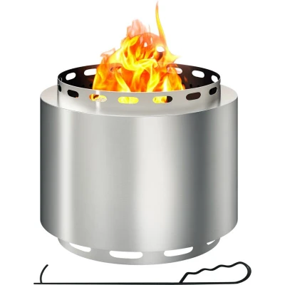 Outsunny Smokeless Fire Pit Portable Wood Burning Firepit with Poker Stainless Steel