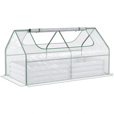 Outsunny Steel Raised Garden Bed Planter Box Kit with Greenhouse, for Dual Use, Clear
