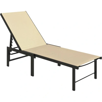 Outsunny Sun Lounger for Garden, 5 Level Adjustable Reclining Chair, Flat Garden Sunbed with Texteline Seat, Steel Frame Patio, Beach, Khaki
