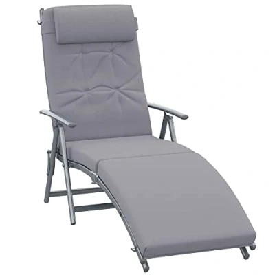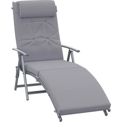 Outsunny Sun Lounger Steel Frame Outdoor Folding Chaise Texteline Lounge Chair Recliner with Headrest & 7 Levels Adjustable Backrest Grey