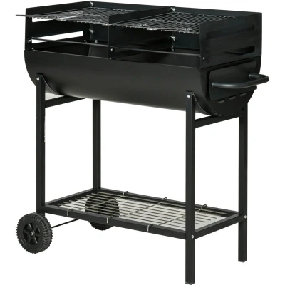 Outsunny Trolley Charcoal BBQ Barbecue Grill Cooker Patio Outdoor Garden Heating Heat Smoker with Wheels, Black 90 x 45 96cm