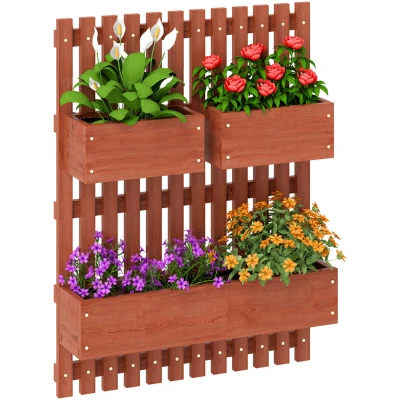 Outsunny Wall mounted Wooden Garden Planters with Trellis, Drainage Holes and 3 Movable Planter Boxes, Raised Bed for Patio, Brown
