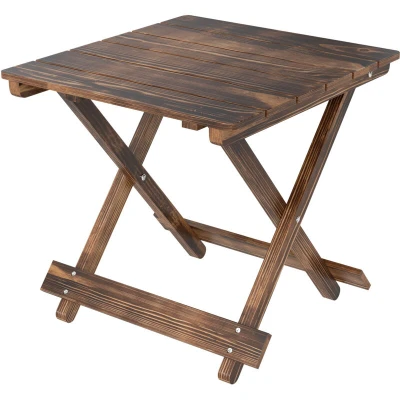 Outsunny Wooden Folding Garden Table, Side Carbonised Finish