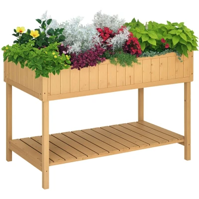 General description Give your flowers, plants, and herbs their own pride of place with the Outsunny Wooden Herb Planter Stand. This raised bed is designed to enhance your garden while providing ample space for organization and display. Crafted from fir wood and coated with water-resistant paint, it is suitable for both indoor and outdoor use. The elevated legs keep the planter off the ground, while the bottom shelf offers convenient storage for tools and equipment. Technical specifications Colour: Natural Material: Fir Wood Overall Dimension: 110L x 46W x 76H cm Planting Area Dimension: 106L x 42W x 18.5H cm Each Grid Size: 26L x 20.5W cm Bottom Shelf Size: 107L x 37W x 13.5H cm Weight Capacity: 18kg (planting area), 12kg (storage shelf) Volume: 82L Maximum Weight: 80kg Flat Pack: Yes Usage Ideal for growing and nurturing plants, flowers, vegetables, herbs, and fruits. Each cube features a drainage hole to prevent water accumulation. The lower shelf is perfect for storing gardening