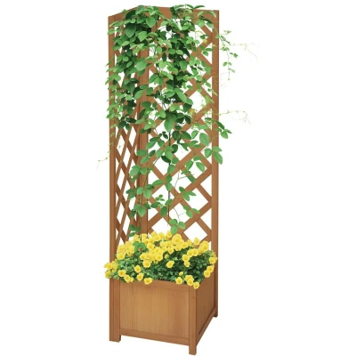 Outsunny Wooden Planter with Corner Trellis, Raised Garden Bed, Brown