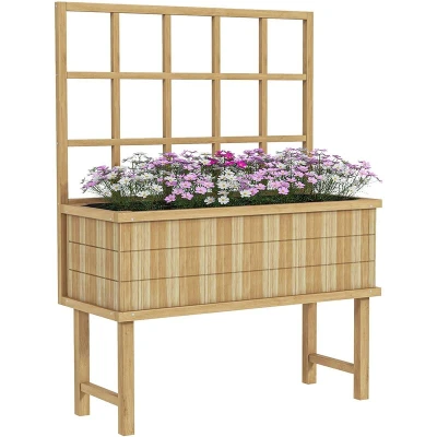 Outsunny Wooden Raised Planter with Trellis for Vine Climbing Plants, Elevated Garden Bed Drainage Holes and Liner Vegetables, Flowers, Herbs, 105 x 45 140cm, Natural