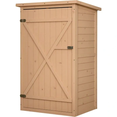 Outsunny Wooden Small Shed, Garden Storage Shed with Shelves and Bolt Latch, 75L x 56W x115H cm, Natural