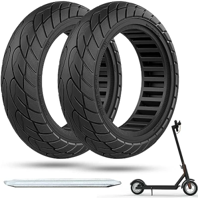 🛴【Upgraded Solid Tire】This solid tire is specially designed for Ninebot Max G30P/G30LP electric scooter. This tire has an excellent advantage without being inflated and replaced frequently. Suitable for scooters with outer diameter of 239mm(9.4in), inner diameter of 163mm(6.4in), a width of 63mm(2.48in) and a slot width of 45mm(1.7in). 🛴 【Durable Scooter Tyre 】This solid tire solid tire is made of high-quality,wear-resistant rubber materials. The groove surface texture of the rubber makes it have excellent grip, precise stability and great handling features. 🛴【Anti-Puncture Solid Tire】This solid tire requires no air,no inflation,no repair,no maintenance,no piercing and no inner tube,so you needn't to worry about being punctured. The excellent cushioning ability keeps the tire firmer than the traditional pneumatic tire. 🛴【Excellent Shock Resistance】The special design of the scooter tire makes it equipped with excellent shock absorbers,explosion-proof and pressure resistance features. It works well in snow and rain while giving you maximum safety. 🛴【Installation method】 Before install this tire,please put it in boiling water for 10 minutes to soften it. We recommend you watch related installation videos on youtube first.Correct installation can help scooter tires get better performance. 🛴【Tips】The 10 inches means diameter after it is mounted to the scooter wheel hub. The tires are flexible and the actual size of the it is bound to be smaller before it is mounted to the scooter hub, otherwise the tire will not fit tightly and will simply fall off the scooter hub.