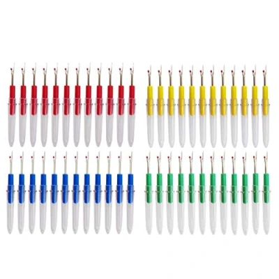 PREMIUM MATERIAL: Being made of high quality metal and plastic which is hard, durable and not easy to break, can last for a long time. ERGONOMIC SEAM RIPPERS: The structure design and the material we used are based on ergonomics, very easy to grip with clear plastic cap as an extendable handle. HUMANIZED DESIGN: Our curved blade seam ripper features an extra-sharp concave point and a red round mini ball at the end of the smaller fork, it is good for quickly cutting and ripping out unwanted seams and stitches without damaging the fabric. SAFETY ASSURED: The seam ripper is a pointed tool, and they can easily get into the small places when stitching; The clear plastic cap can prevent your hand from puncture when not in use. WHAT IS IN THE PACKAGE:The package includes 48pcs seam rippers in 4 colors: red, green, yellow, blue,12pcs for each color. You can choose the color you like based on your favorite.