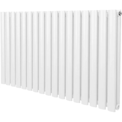 Oval Column Radiator 600mm x 1020mm Modern Designer Double Panel Central Heating Heater Gloss White Carbon Steel Horizontal Kitchen Living Room Bathroom Free Cleaning Brush Fixing Kit & Brackets