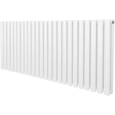 Oval Column Radiator 600mm x 1440mm Modern Designer Double Panel Central Heating Heater Gloss White Carbon Steel Horizontal Kitchen Living Room Bathroom Free Cleaning Brush Fixing Kit & Brackets