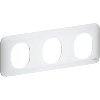 General description This Ovalis finishing plate features a sleek white design with three horizontal positions, making it a stylish addition to any interior. It is designed to clip into place using notched tabs, which allows it to accommodate any irregularities in the wall for a seamless finish. Technical specifications Height: 224 mm Width: 82 mm Depth: 10 mm Sold in packs of 5 Other information Complies with EN 60669-1 and NF C 61-314 standards Does not contain heavy metals to minimize environmental and health impact
