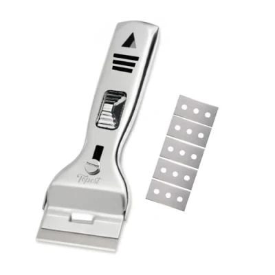 All-purpose Cleaning Tool: Versatile heavy duty cleaning tool can be used on various surfaces to remove stubborn stains with with ease and efficiently Cleaning tool can be used on ovens, hob, glass, ceramic stovetops, windows and all delicate surfaces without scratching and damaging surfaces. Efficient Cleaning Tool: Get rid of burnt-on food, stubborn stains, grease & grime from your oven and hob surfaces with our easy to use tool in minutes with little effort. Strong and Durable Tool: Cleaning tool is made of durable stainless steeel. Tool is sturdy and comes with an ergonomically designed handle for a solid grip, comfortable and safe handling. To use Push button to bottom position and top position to protect and hide away when not in use. Pack includes 1X oven cleaning tool and 5 spare replacements