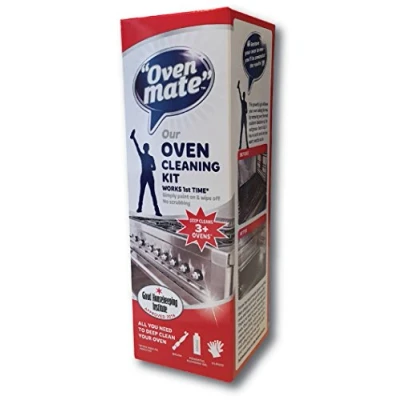 EurofficeRed. Kit includes 500ml bottle of Oven Mate cleaning gel, cloth and cleaning brush. Powerful cleaning action. Approved by the 'Good Housekeeping Institute'.
