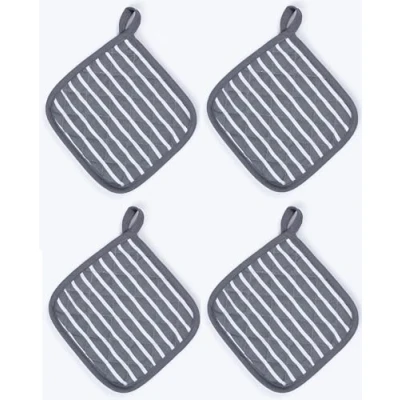 Oven Mitts Pot Holders Sets, 4 Pack, Heat Resistant Potholders for Kitchen Baking Cotton Square Mitts, Grey