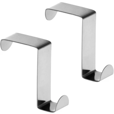 General description These hooks are made from non-corrosive stainless steel and have a sleek chrome finish. Their design allows them to be slotted over a cupboard door, making them a great alternative to permanent wall-mounted fixtures. Ideal for hanging tea towels, oven gloves, or hand towels, their reversible build allows them to be used with doors that are 2cm and 4cm thick.