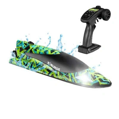 Overmax RC boat 35 km/h X SURGE Fast Remote control Racing Speedboat with 2 Batteries, 30 Min Play, 100m Range, Jet Drive, LED Lights, Auto Flip, Waterproof, For Pool Lake Sea