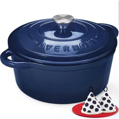 [Effortless Cleaning]The flat and smooth enamel surface not only delivers a superior cooking experience but also makes cleaning a breeze. Easily remove food residues with a gentle wipe from a soft sponge or cloth. Additionally, we've included a cotton heat-resistant cap, ensuring a comfortable grip and safeguarding you from burns when handling the pot's handles and lid. [Perfectly Preserved Flavors]Say goodbye to dry and overcooked meals! With our innovative design, water vapor condenses evenly on the lid, preserving the ideal humidity and flavors. Unlike traditional pot covers where condensation runs down the sides, our lid keeps your dishes succulent. [Diverse Cooking Options]Whether it's traditional British stews, French casseroles, or Italian pasta dishes, enamel pots can handle them all. Their even heat distribution ensures that dishes are cooked evenly, maintaining the authentic flavors of the ingredients. [Health and Eco-friendliness]People are increasingly conscious of health and the environment, and Overmont enamel pots excel in this aspect. Free from harmful chemicals, enamel pots do not release toxins, thus preserving the purity and nutrients of food. [A Popular Gift]With their elegant appearance and outstanding performance, enamel pots also make excellent gifts. During holidays or special occasions, presenting a set of Overmont high-quality enamel pots is sure to be appreciated and welcomed by the recipient., Weight: 5.5 Kilograms, Manufacturer: OVERMONT