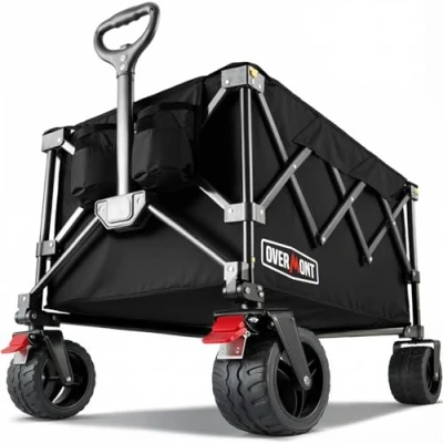 Overmont Folding Festival Trolley 330LBS/150kg Large Capacity Camping Wagon for Beach Garden Picnic Shopping, Heavy Duty Cart with Adjustable Handle & All Terrain Wheels and Brake, Black