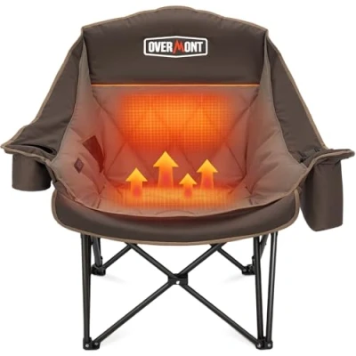 ใTipsใ๐๐๐ญ๐ญ๐๐ซ๐ฒ ๐ข๐ฌ ๐๐๐ ๐ข๐ง๐๐ฅ๐ฎ๐๐๐. For consistent warmth, use a power bank of at least 20000mAh, and ๐๐ข๐ฌ๐๐จ๐ง๐ง๐๐๐ญ ๐ญ๐ก๐ ๐๐๐ ๐ฉ๐จ๐ซ๐ญ ๐๐๐ญ๐๐ซ ๐ฎ๐ฌ๐ to prevent unnecessary power drain. Use your ๐ญ๐ก๐ฎ๐ฆ๐๐ง๐๐ข๐ฅ to open the USB port cover for easier access, as it can be tough to open with your fingers alone. ใDesigned for Comfort and Safety, Delivers ๐๐๐ง๐ญ๐ฅ๐ ๐๐๐ซ๐ฆ๐ญ๐ก ๐ฐ๐ข๐ญ๐ก๐จ๐ฎ๐ญ ๐๐ฏ๐๐ซ๐ก๐๐๐ญ๐ข๐ง๐ ใ๐๐ง๐ฌ๐ฎ๐ซ๐ ๐ฒ๐จ๐ฎ๐ซ ๐๐จ๐๐ฒ ๐ข๐ฌ ๐ข๐ง ๐๐ฅ๐จ๐ฌ๐ ๐๐จ๐ง๐ญ๐๐๐ญ ๐ฐ๐ข๐ญ๐ก ๐ญ๐ก๐ ๐๐ก๐๐ข๐ซ ๐๐ฎ๐ซ๐ข๐ง๐ ๐ก๐๐๐ญ๐ข๐ง๐ for quicker and more effective warmth. Stay warm and cozy with 3 heat levels (up to 66ยฐC). The backrest and seat heat independently, allowing you to customize warmth exactly where you need it. Compatible with any 5V/3A USB power bank, itโs perfect for chilly football games or other outdoor activities. ใOversized & Comfortable SizeใMeasures 37 ร 23 ร 22 inches when unfolded, offering ample space and reliable support. Designed for larger users, Overmont oversized camping chair balances comfort and portability, making it an ideal choice for plus-size outdoor seating. ใErgonomic Comfy Padded DesignใFilled with 2.5 lbs of soft, high-density cotton, this wrap-around padded camping chair provides lasting support and comfort for hours of outdoor activities, letting you indulge in ultimate relaxation. ใDurable & Sturdy ConstructionใReinforced double stitching in high-stress areas enhances durability and prevents fraying, while angled legs provide a more comfortable experience compared to standard large camping chairs. With a weight capacity of 400 lbs, this heavy-duty chair offers stable and reliable seating for everyone. ใQuick Fold & Multi-StorageใDesigned with the user in mind, Overmont camping chair includes an oversized cup holder that fits most beverage sizes, a large cooler bag, and a side mesh pocket for easy access to personal items. Comes with a carry bag for easy transport, making it a versatile choice for comfy camping chairs for adults.