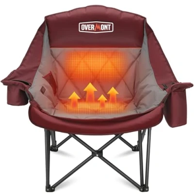 ใTipsใ๐๐๐ญ๐ญ๐๐ซ๐ฒ ๐ข๐ฌ ๐๐๐ ๐ข๐ง๐๐ฅ๐ฎ๐๐๐. For consistent warmth, use a power bank of at least 20000mAh, and ๐๐ข๐ฌ๐๐จ๐ง๐ง๐๐๐ญ ๐ญ๐ก๐ ๐๐๐ ๐ฉ๐จ๐ซ๐ญ ๐๐๐ญ๐๐ซ ๐ฎ๐ฌ๐ to prevent unnecessary power drain. Use your ๐ญ๐ก๐ฎ๐ฆ๐๐ง๐๐ข๐ฅ to open the USB port cover for easier access, as it can be tough to open with your fingers alone. ใDesigned for Comfort and Safety, Delivers ๐๐๐ง๐ญ๐ฅ๐ ๐๐๐ซ๐ฆ๐ญ๐ก ๐ฐ๐ข๐ญ๐ก๐จ๐ฎ๐ญ ๐๐ฏ๐๐ซ๐ก๐๐๐ญ๐ข๐ง๐ ใ๐๐ง๐ฌ๐ฎ๐ซ๐ ๐ฒ๐จ๐ฎ๐ซ ๐๐จ๐๐ฒ ๐ข๐ฌ ๐ข๐ง ๐๐ฅ๐จ๐ฌ๐ ๐๐จ๐ง๐ญ๐๐๐ญ ๐ฐ๐ข๐ญ๐ก ๐ญ๐ก๐ ๐๐ก๐๐ข๐ซ ๐๐ฎ๐ซ๐ข๐ง๐ ๐ก๐๐๐ญ๐ข๐ง๐ for quicker and more effective warmth. Stay warm and cozy with 3 heat levels (up to 66ยฐC). The backrest and seat heat independently, allowing you to customize warmth exactly where you need it. Compatible with any 5V/3A USB power bank, itโs perfect for chilly football games or other outdoor activities. ใOversized & Comfortable SizeใMeasures 37 ร 23 ร 22 inches when unfolded, offering ample space and reliable support. Designed for larger users, Overmont oversized camping chair balances comfort and portability, making it an ideal choice for plus-size outdoor seating. ใErgonomic Comfy Padded DesignใFilled with 2.5 lbs of soft, high-density cotton, this wrap-around padded camping chair provides lasting support and comfort for hours of outdoor activities, letting you indulge in ultimate relaxation. ใDurable & Sturdy ConstructionใReinforced double stitching in high-stress areas enhances durability and prevents fraying, while angled legs provide a more comfortable experience compared to standard large camping chairs. With a weight capacity of 400 lbs, this heavy-duty chair offers stable and reliable seating for everyone. ใQuick Fold & Multi-StorageใDesigned with the user in mind, Overmont camping chair includes an oversized cup holder that fits most beverage sizes, a large cooler bag, and a side mesh pocket for easy access to personal items. Comes with a carry bag for easy transport, making it a versatile choice for comfy camping chairs for adults.