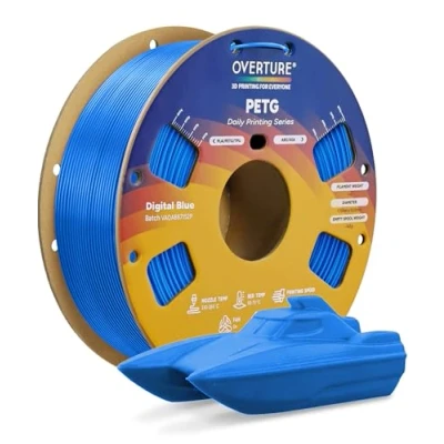 【Stronger Than PLA, Easier Than ABS!】Tired of brittle prints? Overture PETG offers the great of both worlds—delivering the strength and durability of ABS with the ease of printing of PLA. Perfect for functional parts, mechanical components, and outdoor applications, it’s the premium filament for robust, reliable creations 【Built for Real-World Challenges!】Need a filament that can handle heat, moisture, and impact? OVERTURE is a premium filament for robust prints! With excellent layer adhesion, low shrinkage, and high impact strength, Print with confidence, no matter the challenge 【No More Tangles, No More Headaches!】Say goodbye to frustrating filament tangles! Overture’s precision-wound spools ensure smooth, tangle-free experience from the first layer to the last. Spend less time untangling messes and more time bringing your awesome 3D creations to life 【Vibrant Colors, Endless Possibilities!】 From eye-catching cosplay props to custom tools, Overture PETG offers a rainbow of vibrant, fade-resistant colors. Bring your ideas to life with filament that’s as bold and durable as your imagination - your creations will look as stunning as they perform 【Supported & Smooth Printing】 Print with confidence. Overture filament comes with dedicated support and a 1-year shelf life for unopened spools (proper storage required). We're committed to timely solutions for a seamless printing experience. Your reliable 3D printing partner