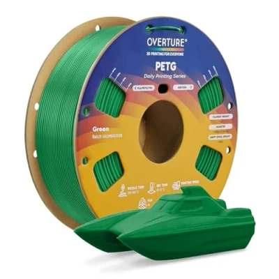 【Stronger Than PLA, Easier Than ABS!】Tired of brittle prints? Overture PETG offers the great of both worlds—delivering the strength and durability of ABS with the ease of printing of PLA. Perfect for functional parts, mechanical components, and outdoor applications, it’s the premium filament for robust, reliable creations 【Built for Real-World Challenges!】Need a filament that can handle heat, moisture, and impact? OVERTURE is a premium filament for robust prints! With excellent layer adhesion, low shrinkage, and high impact strength, Print with confidence, no matter the challenge 【No More Tangles, No More Headaches!】Say goodbye to frustrating filament tangles! Overture’s precision-wound spools ensure smooth, tangle-free experience from the first layer to the last. Spend less time untangling messes and more time bringing your awesome 3D creations to life 【Vibrant Colors, Endless Possibilities!】 From eye-catching cosplay props to custom tools, Overture PETG offers a rainbow of vibrant, fade-resistant colors. Bring your ideas to life with filament that’s as bold and durable as your imagination - your creations will look as stunning as they perform 【Supported & Smooth Printing】 Print with confidence. Overture filament comes with dedicated support and a 1-year shelf life for unopened spools (proper storage required). We're committed to timely solutions for a seamless printing experience. Your reliable 3D printing partner