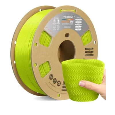 【Rapid 95A TPU Filament】Overture High Speed TPU Filament is thermoplastic polyurethane (TPU) based filament but can print 5 times fast as ordinary TPU filaments. Featuring Shore hardness of 95A, Overture High Speed TPU strikes the ideal balance between softness and resilience 【Excellent Layer Adhesion】 Setting the standard for impeccable layer adhesion and delivering impressive results. Overture TPU features optimal layer bonding and a flawlessly smooth finish, make these soft filaments of of high Elasticity easy to print 【Clog-Free & Bubble-Free】 Designed and manufactured with our patented clog-free formula to guarantee a smooth and seamless printing experience. All spools undergo thorough drying for 24 hours before packaging and are vacuum-sealed in resealable foil packaging. To maintain optimal performance, store TPU filament in sealed storage with desiccants (silica gel) or dry for >8 hours at 65˚C 【Wide Compatibility and Color Selection】 Overture filaments seamlessly integrates with most consumer and industrial 3D printers. Explore your creative side with our extensive selection of vibrant colors, ensuring a spectrum of possibilities for your unique creations 【Supported & Smooth Printing】 Print with confidence. Overture filament comes with dedicated support and a 1-year shelf life for unopened spools (proper storage required). We're committed to timely solutions for a seamless printing experience. Your reliable 3D printing partner