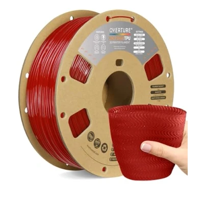 【Rapid 95A TPU Filament】Overture High Speed TPU Filament is thermoplastic polyurethane (TPU) based filament but can print 5 times fast as ordinary TPU filaments. Featuring Shore hardness of 95A, Overture High Speed TPU strikes the ideal balance between softness and resilience 【Excellent Layer Adhesion】 Setting the standard for impeccable layer adhesion and delivering impressive results. Overture TPU features optimal layer bonding and a flawlessly smooth finish, make these soft filaments of of high Elasticity easy to print 【Clog-Free & Bubble-Free】 Designed and manufactured with our patented clog-free formula to guarantee a smooth and seamless printing experience. All spools undergo thorough drying for 24 hours before packaging and are vacuum-sealed in resealable foil packaging. To maintain optimal performance, store TPU filament in sealed storage with desiccants (silica gel) or dry for >8 hours at 65˚C 【Wide Compatibility and Color Selection】 Overture filaments seamlessly integrates with most consumer and industrial 3D printers. Explore your creative side with our extensive selection of vibrant colors, ensuring a spectrum of possibilities for your unique creations 【Supported & Smooth Printing】 Print with confidence. Overture filament comes with dedicated support and a 1-year shelf life for unopened spools (proper storage required). We're committed to timely solutions for a seamless printing experience. Your reliable 3D printing partner
