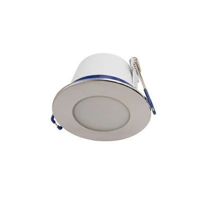 Fire rated LED downlight in a chrome finish from Ovia Lighting. The fully integrated LED light source produces a light output of 390 lumens. With a beam angle of 90 degrees its dimmable as standard and has a 4000K cool white colour temperature.