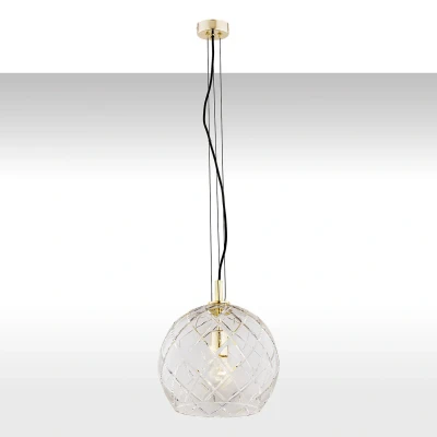 Illuminate your space with the Oviedo Globe Pendant Ceiling Light. Boasting a transparent finish and brass steel elements, this lamp adds a touch of modern elegance while providing warm ambient light to any area.