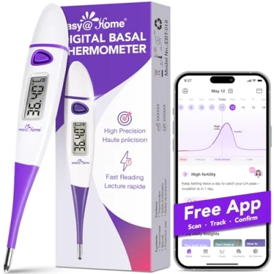 Ovulation Tracker Digital Basal Thermometer: Easy@Home BBT Thermometer for Fertility Prediction Body Accurate Temperature Monitoring with Premom App Purple DMT 3018