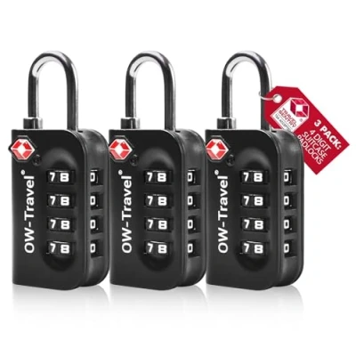 【TSA Approved - Certified to Travel】TSA Accepted, Travel Sentry Approved. Master Key Compliant so customs agents can safely open travel locks for luggage without damage to cases. TSA luggage locks for suitcases with red diamond logo ensure your travel gear can be opened by all TSA security operators, avoiding £1,000's in damages and speeding up inspections of suitcases, backpacks, especially the USA. These TSA case locks for luggage and backpack locks give peace of mind. 【Durable & Robust – Built to Endure and Protect】The OW-Travel suitcase padlocks are engineered from tough zinc alloy, making them highly resistant to cutting or tampering with standard tools. Designed specifically for travel, these TSA locks for luggage offer enhanced protection for your suitcase. The 4 dial numerical TSA approved luggage locks allow 10,000 possible combinations making it virtually impossible to crack. Double your security with a combination padlock for suitcase. 【Easy To Use – Designed for Convenience】These luggage padlocks for suitcases have bigger easy move dials. High contrast white numbers on a black background and the quick read window make reading your combination easy. Quickly reset pass code locks in 3 simple steps. A TSA travel lock is perfect for airplane carry on cabin hand baggage. A TSA travel padlock with combination is a padlock for travel but can be used around the home. Luggage padlock case padlock keep belongings SAFE. 【Multiple Uses – Versatile and Reliable】Compact and Lightweight these TSA locks for luggage are an ideal suitcase lock / luggage lock, zip lock, backpack lock or bag lock. Their versatility extends beyond travel: gym locker, toolbox, home filing cabinet storage, metal cabinets, laptop bag, briefcase, camera bags, locks for cases, golf bag or tent lock for zips. The coded combination TSA lock offers a sturdy feel the moment you pick it up, suitcase accessories that last. 【OW-Travel Making Travel Simpler, Better and More Fun】What You Get: OW-Travel Accessory padlock "Built to Last", welcome guide and friendly customer service. Ideal travelling gifts and presents for men and women travellers. As well as no key lock for suitcase the range includes keyless cable lock, keyed locks, travel padlocks for luggage with inspection indicator, small padlock and mini padlock. Available in single pack suitcase pad lock TSA, luggage padlocks TSA 2 pack or Multiple Packs.