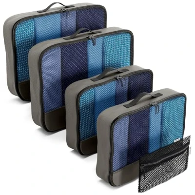 【A Packing Cube For Packing Bags】Pack like a Pro with wrinkle free clothes storage. No more messy travel kit in your clothes bags with this travel organiser. The travel packing cubes mesh top panel allows you to see travel clothes in a glance. A double zipper engineered to open wide. Webbing handle for easy carrying of luggage cubes. Packing cubes as carry on luggage: check in baggage over the weight allowance, the clothes organiser becomes cabin hand luggage reducing excess baggage charges. 【Easy To Organise】Travel set of 4 travel cubes for packing in Medium or Large plus a mesh zipper pouch for your travel accessories. Luggage cubes for packing make packing bags for travel easier. Suitcase packing cubes save time and space. No need to repack at every stop. Keep your hotel room tidy and separate dirty laundry. These versatile holiday bags can switch from luggage organiser bags to travel laundry bags at the end of the holiday. A dual use clothes storage bag. 【Durable, Dependable and Light】The luggage organiser set is made from nylon like polyester fabric with finished interior seams. Travelling accessories to survive the rigours of travel. These simple ultra light packing cubes for travel offer abundant organised clothing storage without adding weight at under 100g / bag organizer. Large has plenty of storage and Medium is perfect for short trips. Slim, compact and foldable the travel organiser packing bags packs away small when not in use. 【Less Mess. More Space】Clothes Organisers At Home and Travel Storage On Holiday. As well as being holiday essentials these travel essentials double as home storage solutions, organising drawers, wardrobes and your underwear. Can be used as a baby bag organiser, men's gadget tidy or for hospital stays. These versatile travel pouches have 101 uses: in suitcases, backpack when rucksack hiking, as toiletry organizer or for camping. 【OW-Travel Making Travel Simpler, Better and More Fun】Holiday accessories like travel packing organizers make wonderful gifts for women and thoughtful presents for men. These travel essentials also work for home storage and organising seasonal clothes. Packing cubes are perfect for organising in small spaces, making them ideal camper van accessories, cruise ship essentials and handy caravan accessories gadgets. This 4 pcs travel accessory for suitcase bags can be yours. Click "Add to Cart"!