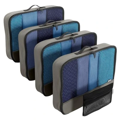 【A Packing Cube For Packing Bags】Pack like a Pro with wrinkle free clothes storage. No more messy travel kit in your clothes bags with this travel organiser. The travel packing cubes mesh top panel allows you to see travel clothes in a glance. A double zipper engineered to open wide. Webbing handle for easy carrying of luggage cubes. Packing cubes as carry on luggage: check in baggage over the weight allowance, the clothes organiser becomes cabin hand luggage reducing excess baggage charges. 【Easy To Organise】Travel set of 4 travel cubes for packing in Medium or Large plus a mesh zipper pouch for your travel accessories. Luggage cubes for packing make packing bags for travel easier. Suitcase packing cubes save time and space. No need to repack at every stop. Keep your hotel room tidy and separate dirty laundry. These versatile holiday bags can switch from luggage organiser bags to travel laundry bags at the end of the holiday. A dual use clothes storage bag. 【Durable, Dependable and Light】The luggage organiser set is made from nylon like polyester fabric with finished interior seams. Travelling accessories to survive the rigours of travel. These simple ultra light packing cubes for travel offer abundant organised clothing storage without adding weight at under 100g / bag organizer. Large has plenty of storage and Medium is perfect for short trips. Slim, compact and foldable the travel organiser packing bags packs away small when not in use. 【Less Mess. More Space】Clothes Organisers At Home and Travel Storage On Holiday. As well as being holiday essentials these travel essentials double as home storage solutions, organising drawers, wardrobes and your underwear. Can be used as a baby bag organiser, men's gadget tidy or for hospital stays. These versatile travel pouches have 101 uses: in suitcases, backpack when rucksack hiking, as toiletry organizer or for camping. 【OW-Travel Making Travel Simpler, Better and More Fun】Holiday accessories like travel packing organizers make wonderful gifts for women and thoughtful presents for men. These travel essentials also work for home storage and organising seasonal clothes. Packing cubes are perfect for organising in small spaces, making them ideal camper van accessories, cruise ship essentials and handy caravan accessories gadgets. This 4 pcs travel accessory for suitcase bags can be yours. Click "Add to Cart"!