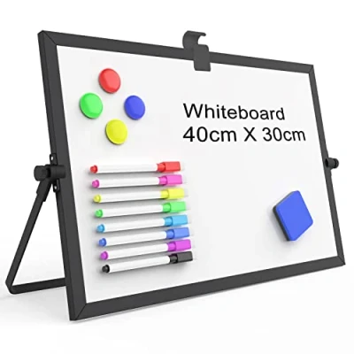 【Unique Design】The double-sided will make you have maximized writing space. It allows you to have two projects going. It is the best tool for small group teaching, home teaching or memo. You or children can carry this by themselves from room to room and best for teachers teaching in small groups. Perfect for reading, learning, presentation, arts and education. It can hang and stand, almost any place you can put to remind you not forget the important thing. 【Package Includes】The 30 X 40 cm lightweight double-sided dry erase board set comes with 8 pcs magnetic dry erase markers, 4 pcs magnetic piece, 1 pcs dry eraser and 1 pcs marker holder. This big A3 whiteboard is great size for office desktop, study table, bedside table, class podium and kitchen counter. Portable design makes it easy to change placement as you like. Carry this portable erase board with stand on your trips, travels and holidays easily. 【Easy to Clean】Magnetic small desktop whiteboard comes with a smooth and durable writing surface. It's easy to write on and easy to wipe clean without stain. The double-sided whiteboard will give you maximize writing space. Our whiteboard set is safe for kids. Please peel off protective film on double sides before using. 【Exquisite Gift】Our hangable whiteboard is cool for the kitchen, dorm, bedroom and office. This personal large whiteboard also can be a calendar. Our mini whiteboard is a great school learning board that help students lesson plans go smoothly. Also enhance children creative and boost kids' drawing and writing skills. It's can be used to math practicing and teacher teaching. It’s the best gift for the workers, home chef, adult, students, teenaged and kids. 【QUALITY SERVICE】If you have any questions or dissatisfaction with the product, please contact us at any time. We will provide you with the best solution in the first time. Your satisfaction is our eternal pursuit.