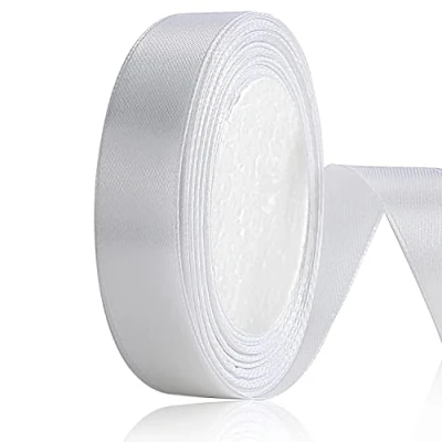 OWill White Satin Ribbon, Double Sided Polyester 20mm X 22m(24 Yards) Gift Wrapping Ribbon for Cake Decoration, DIY Sewing Project, Party Balloon & Hair Bows Decoration