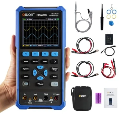 OWON HDS2202S Handheld Oscilloscope, 200MHz Bandwidth 3 in 1 Digital Multimeter 20000 Counts with 2 Channel USB Type C and 3.5 Inch LCD Display (oscilloscope+multimeter+generator)